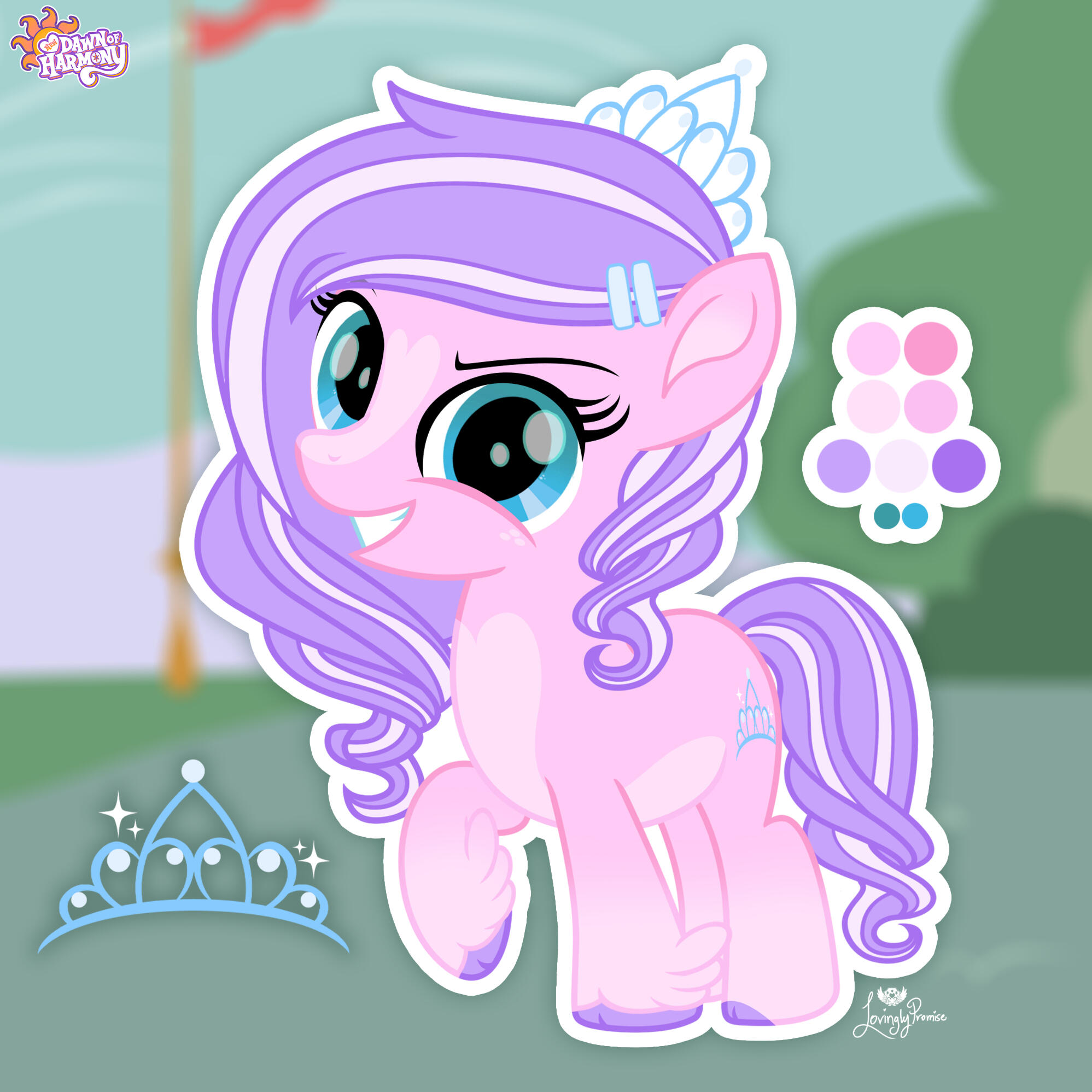 Lovely Promise is the middle child of Queen Cadance and Shining Armor, and a princess of the Crystal Empire. Though born into royalty, she is naturally introverted and finds peace in quiet moments, often retreating into books or diving into deep studies, much like her Aunt Twilight.She is deeply empathetic, with a strong desire to truly understand others and build meaningful connections through emotional safety and validation. Lovely believes that everyone has the potential to grow and change, no matter where they come from.Her cutie mark reflects this personal vow: a promise to protect those she cares about, emotionally and physically, with unwavering compassion and strength.